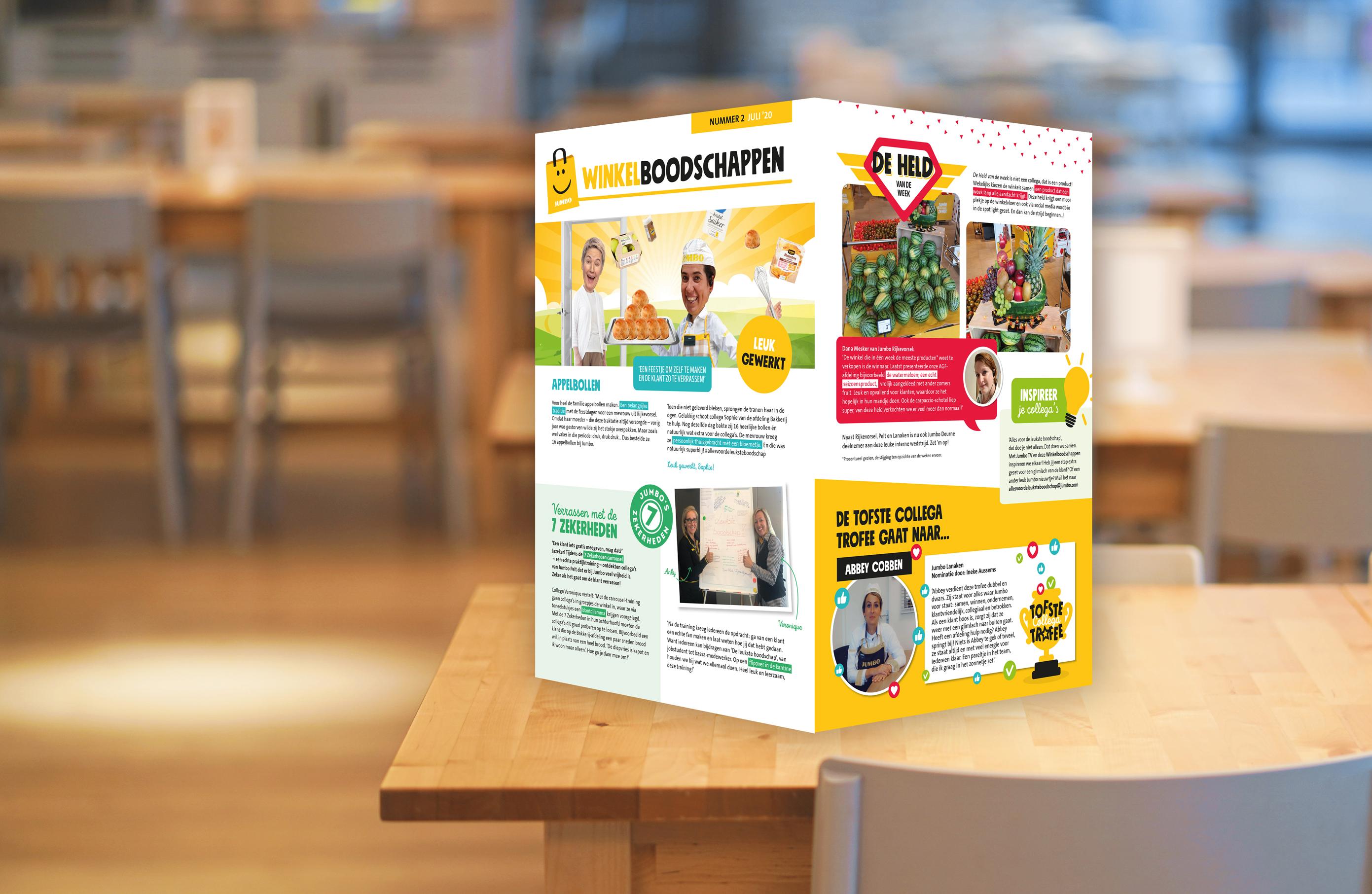 Wat zijn we blij met een klant als Jumbo. Al jarenlang een heel trouwe opdrachtgever. Dus toen de vraag oppopte om de content voor de interne communicatiemiddelen naar een hoger niveau te tillen zeiden we natuurlijk volmondig ‘ja’. Dat al die content aan moest sluiten bij de marketingdoelstellingen van Jumbo maakte het extra leuk: alles gericht op een zo leuk mogelijke winkelervaring voor de klant.